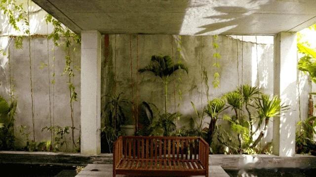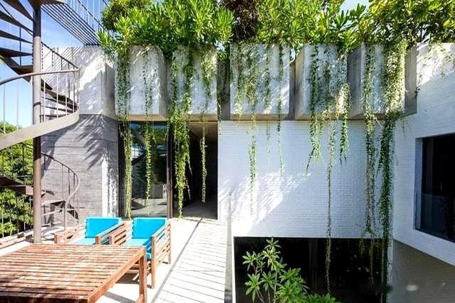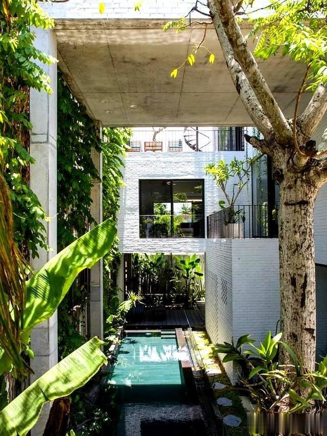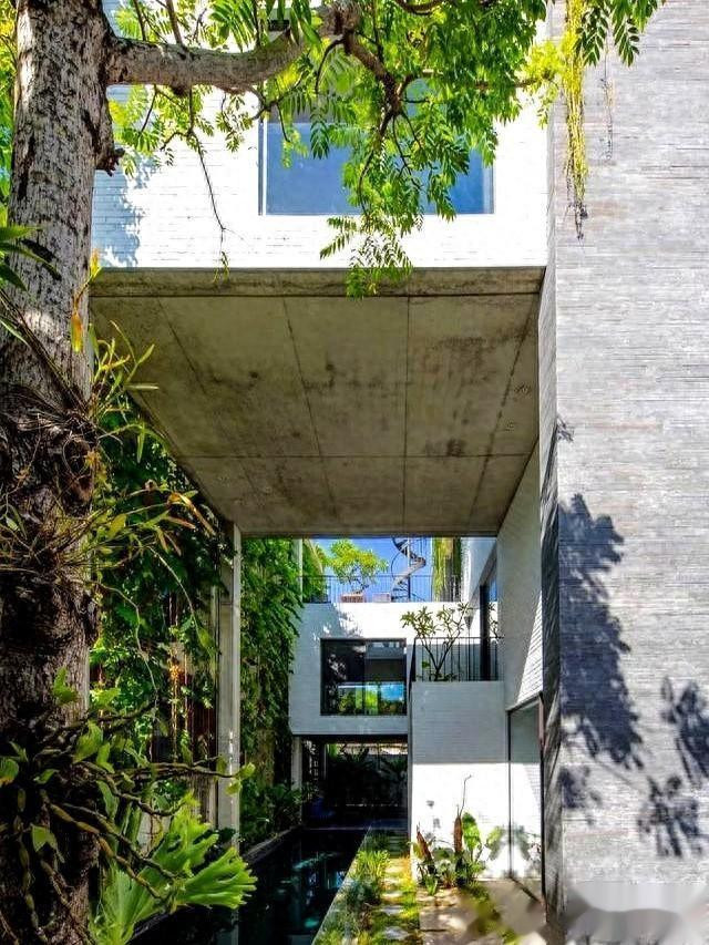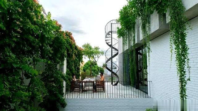 整面墙种着爬山虎,夏天吸热冬天落叶。